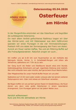 Auch in diesem Jahr veranstaltet der Festkreis des Hörnle Vereins wieder ein Osterfeuer am Ostersonntag am Naturgut Hörnle: