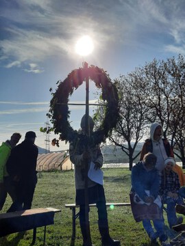 Ein nach altem Vorbild geflochtenes Radkreuz tragen wir über